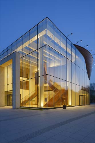 Tinted glass reduces glare and heat from sunlight. It comes in colors like bronze, grey, green, and blue, and adds style and privacy to buildings.